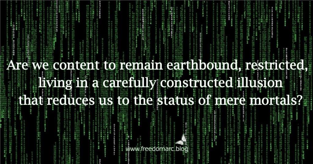 We must live beyond the veil. If we cannot perceive (or if we choose to ignore) the eternal realm of which we are citizens, then we will remain confined and tethered to this earthly, DIY version of reality; remain earthbound, restricted, living in a carefully constructed illusion that reduces us to the status of mere mortals, unable to change our circumstances and situations or fulfil our eternal destiny: