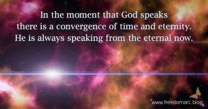 That goes for all the things that He has spoken to you throughout time and eternity, even if you have not heard or understood them! There is a convergence of time and eternity in the moment that He speaks. He is always speaking from the eternal now, so He is not restricted by the constraints of time. He may speak words you understand, or He may speak directly to your spirit.