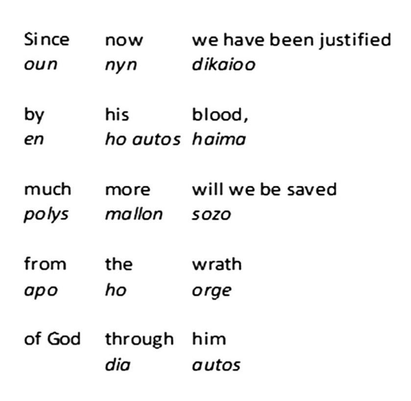 Well, in this case, the King James Version actually gets it right. It says: “Much more then, being now justified by his blood, we shall be saved from wrath through him.” It doesn’t add “God’s”—just “wrath”. The Young’s Literal Translation says: “Much more, then, having been declared righteous now in his blood, we shall be saved through him from the wrath.” That’s what it actually says.